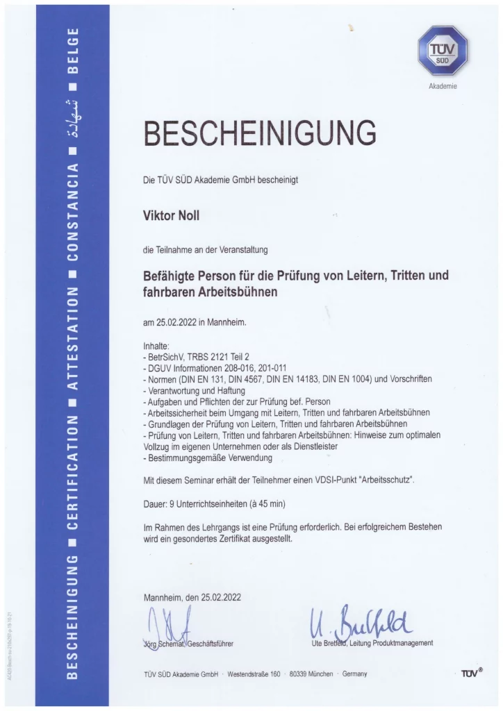 #weiterbildung #weiterentwicklung #zertifizierung #Zertifikat #BetrSichV #DGUV #Arbeitssicherheit #tuevsued #bg #berufsgenossenschaft